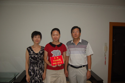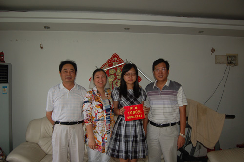 8月22日,校工会副主席夏邦权,化学工程学院副院长、分工会主席关进华等有关人员专程登门看望并奖励了我校2013年高考取得文科、理科第一名的教职工子女。