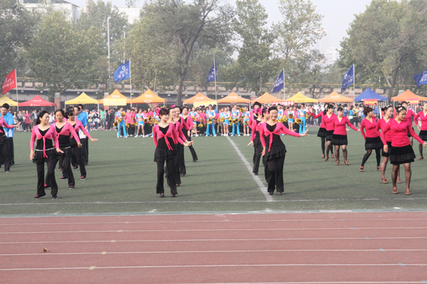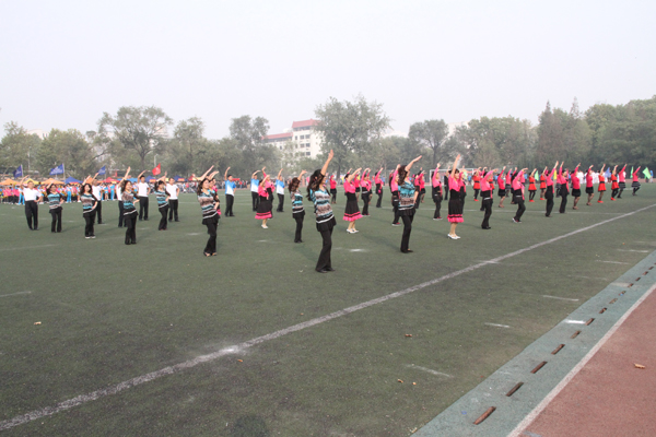 8时40分,随着一曲“今夜舞起来”的动人旋律,由校工会组织的教职工广场舞表演靓丽登场。表演方阵由100余名教职工组成,他们都是各分工会参加校工会举办的教职工广场舞比赛的选手。参演教职工个个精神饱满、欢欣鼓舞,随着欢快的节奏翩翩起舞。那整齐的动作、优美的舞姿赢得了观众们的阵阵掌声和喝彩,充分展示了我校教职工的积极向上的精神面貌,更加衬托了我校第34届运动会的良好氛围。