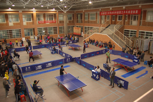 11月15日下午4时,校本部大学生素质中心人声鼎沸,由校工会主办的安徽理工大学2013年教职工乒乓球团体赛在这里拉开了序幕。来自17个基层分工会和校党政办及离退休工作处的200多名运动员参加比赛,比赛吸引了我校广大乒乓球爱好者前来观战。