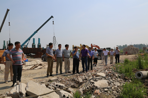 随后,夏邦权一行在指挥部曹光保、洪江如、王振斌等陪同下,实地参观了一标段学生宿舍、三标段B、C、D学生宿舍组团、二标段核心区图书馆和行政办公楼、四标段东、西学院组团、五标段等在建工程,亲身感受施工气氛,并听取了现场负责人关于学生宿舍、图书馆、教学楼、实验楼、行政办公楼施工建设情况的介绍。