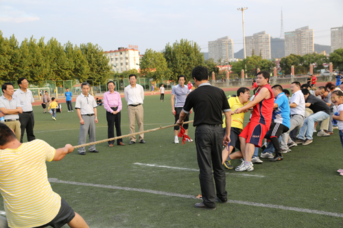 9月22日下午,校本部体育运动场人声鼎沸,热闹非凡,来自14个基层分工会近200多名教职工参加了由校工会主办的2014年教职工拔河比赛,校党委副书记王洪来到比赛场地观看了比赛。