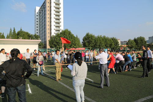 下午4:30,拔河比赛准时开始。各个参赛队各就各位,蓄势待发。只听裁判一声哨响,比赛现场立刻沸腾起来。加油声此起彼伏,喧嚣振耳,大家都鼓足了劲,每局必争。参赛的男女队员们本着我运动、我健康、我快乐的宗旨,个个精神抖擞、凝心聚力,使尽全身力,流下滴滴汗,顽强拼搏,坚持到底。与比赛胜负相比,教职工们更享受同庆、同娱的快乐,更注重彼此间的交流沟通,更希望通过比赛增强集体凝聚力,营造和谐融洽的大家庭气氛。