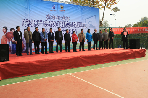 8日上午举行简单的赛前仪式。淮北师范大学党委副书记、纪委书记朱德顺,省教育工会常委、皖北片高校(附院)工会联谊会片长洪江如,各参赛单位工会主席等参加了赛前仪式,朱德顺致欢迎词,仪式由淮北师范大学工会主席陶元春主持。