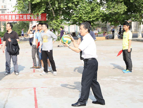 5月6日下午,安徽理工大学本部排球场上人声鼎沸,由校工会主办、体育部承办的2015年度教职工排球友谊赛拉开了序幕。校党委副书记王洪亲临现场并为比赛开球。校工会主席李广田、副主席李颖、各参赛单位的党政领导、分工会主席以及喜爱排球运动的教职工、学生来到现场观看比赛。