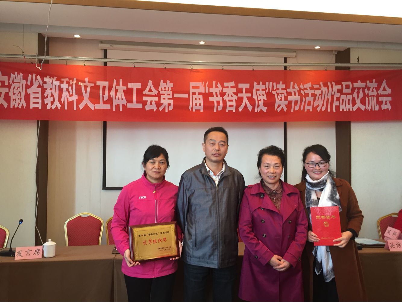 11月8日至10日,安徽省教科文卫体工会第一届“书香天使”读书活动作品交流会在岳西县召开。在本次读书活动中,我校选送的12件作品全部获奖,其中,征文作品一等奖2篇、二等奖2篇、三等奖2篇;家书作品一等奖2篇、二等奖1篇、三等奖2篇;书画类作品优胜奖1篇。校工会获得了优秀组织奖。校女工委副主任谢桂芳、活动获奖者代表医学院陈冉参加了交流会。