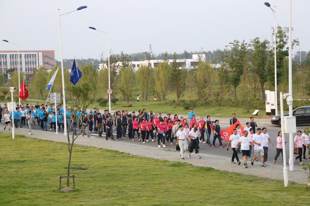 下午5时20分,健步走活动拉开了帷幕。教职工们在各自单位队旗的引领下,精神饱满,身着统一服装,从志远楼门前广场出发,向北绕行鸿烈大道一周,途经学校北门至善门、东门明理门、南门百川门,最后返回志远楼门前广场,全程约3.8公里。活动过程中,浩浩荡荡的队伍洋溢着崇尚运动、参与健身、享受快乐的浓厚校园文化氛围,在校园内构成一道独特的风景线。
