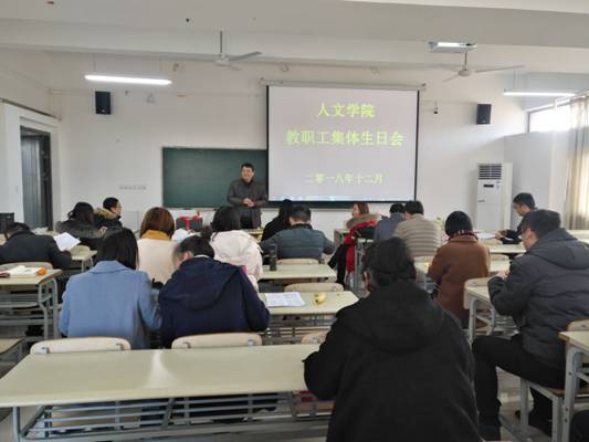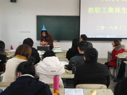 12月14日上午,人文社会科学学院在学院A333教室举办2018年教职工集体生日会,分工会主席主持会议,学院党政领导和全体教师参加了集体生日会。