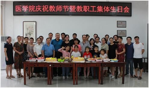 沐浴着九月的和风,品味着鲜花的芬芳,9月10日中午,医学院工会活动室充满欢声笑语,在庆祝第36个教师节到来之际,院工会为上半年过生日的教职工举办了集体生日会。院党委书记刘群红,院工会主席李文月,与参会的“寿星”们共度了这欢乐时光。
