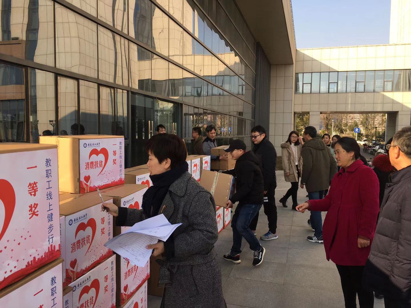 为庆祝建校75周年,增强疫情防控期间教职工体质,养成热爱运动、积极健身的良好习惯,学校创新性把教职工健身运动与消费扶贫结合起来,开展了为期5个月的线上健步行活动,活动目前圆满结束。12月17日,校党委副书记、常务副校长虞宝桃赴毛集实验区孙台村出席学校消费扶贫“教职工健步行奖品”发车仪式。