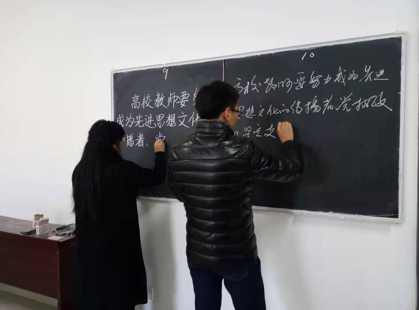 12月6日,为了展示广大教师风采,提高教师教学业务能力,增强课堂教学的实效性,外国语学院在崇智楼二楼B201教室举办教师教学板书比赛活动。