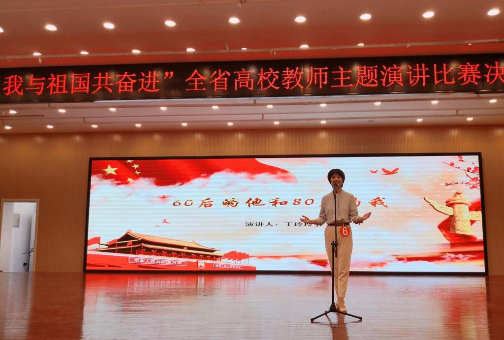 比赛中,丁玲玲老师紧紧围绕“我与祖国共奋进”这一主题,以新中国建设发展的见证者、参与者、受益者为视角,讲述了自己的成长故事、支教岁月和辅导员工作,展现了我校教师勇于担当的时代风貌,表达了对祖国的无限热爱、对党的无比忠诚和对教育事业的满腔热情。