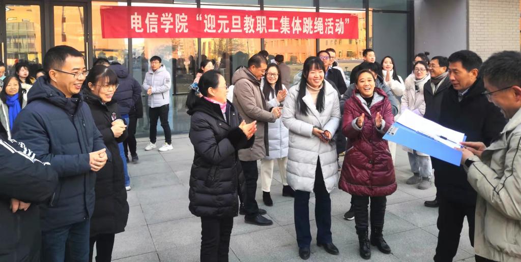 跳绳活动是冬季锻炼身体很好的运动方式,12月28日下午,在电气与信息工程学院东门口前,举行了精彩的“集体跳绳比赛”。