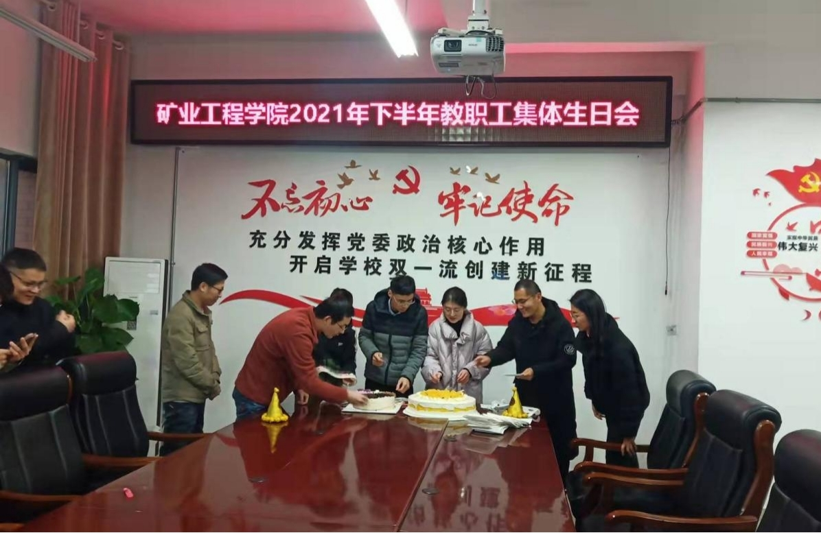 12月24日下午,矿业工程学院工会举办了2021年下半年教职工集体生日会。院长杨科致辞。