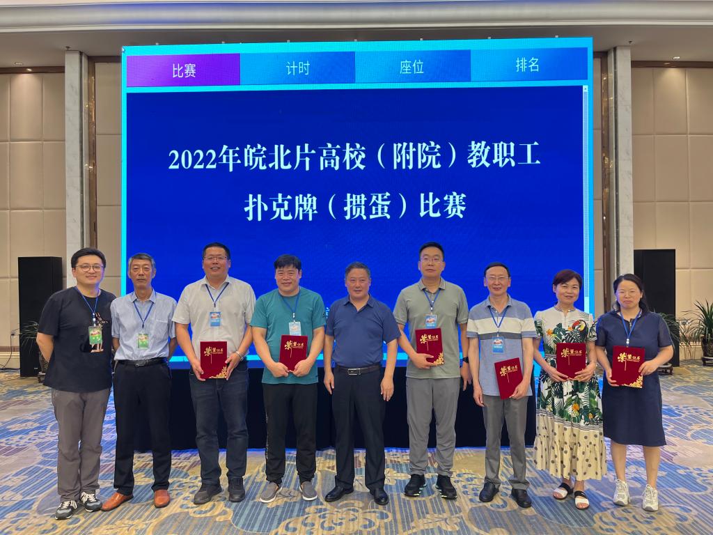 6月25日,2022年皖北片高校(附院)教职工扑克牌(掼蛋)比赛在淮北师范大学举行,我校三组队员取得优异成绩。