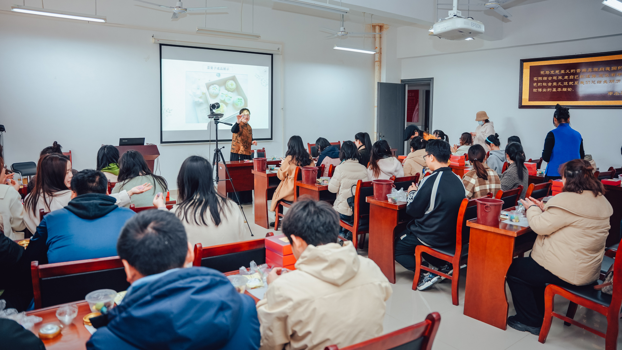 3月3日下午两点在学院411室开展茶果文化研习活动。活动中,女教职工了解了茶果子的历史和茶果子的制作流程,亲手体验了手工制作茶果子。感受到了传统茶文化的魅力,放松了身心,陶冶了情操。