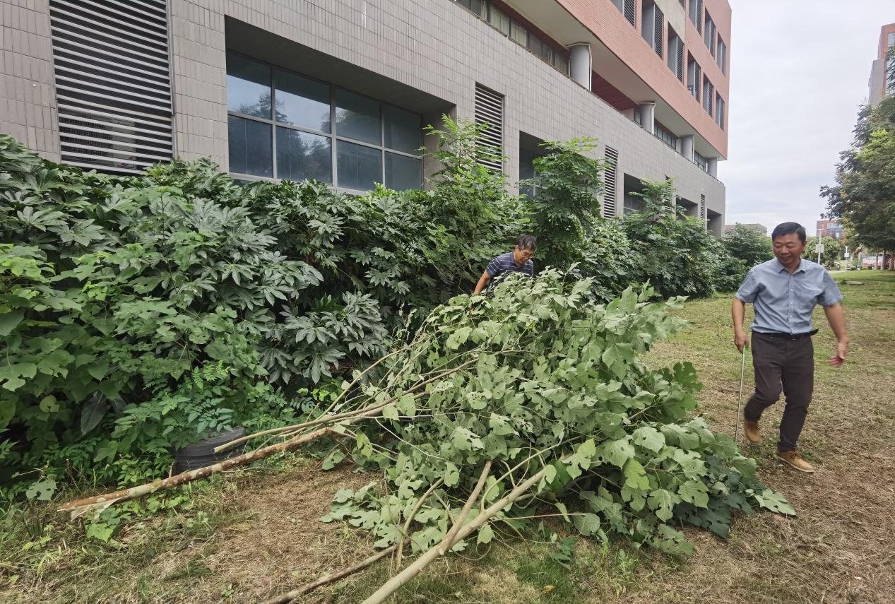 活动现场,院领导带头参与,全体职工积极响应,以工会小组为单位,明确清扫目标任务,携带扫帚、簸箕、铁铲等工具,对崇义楼楼内及周边环境卫生进行整治。大家分工明确、相互配合,搜寻道路上草丛中的落叶、废纸、杂物等垃圾,对石板缝的杂草等卫生死角进行了彻底清理。