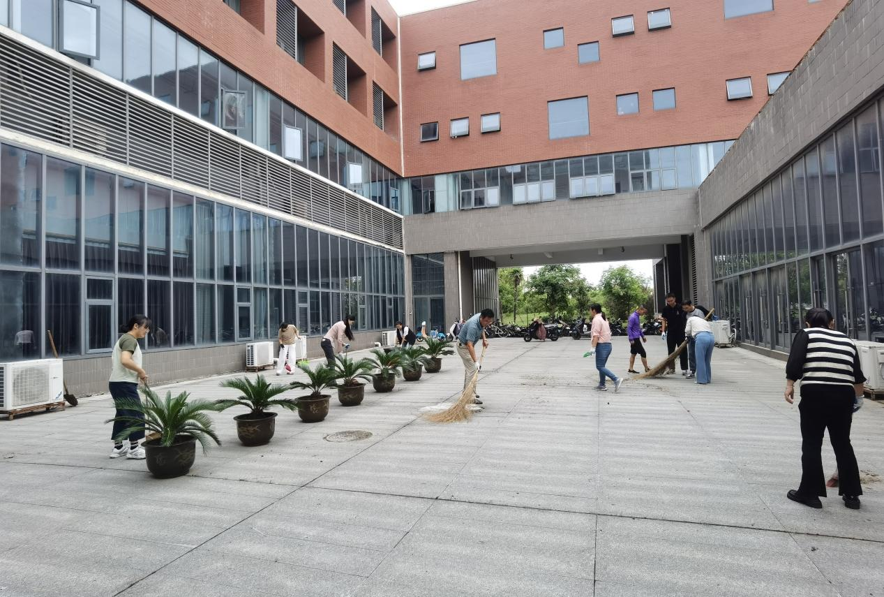 在中秋、国庆节来临之际,为营造一个舒适优美、整洁的环境,9月22日下午,材料学院工会组织全院教职工在崇义楼周边开展“迎中秋·庆国庆”爱国卫生集中大扫除活动。
