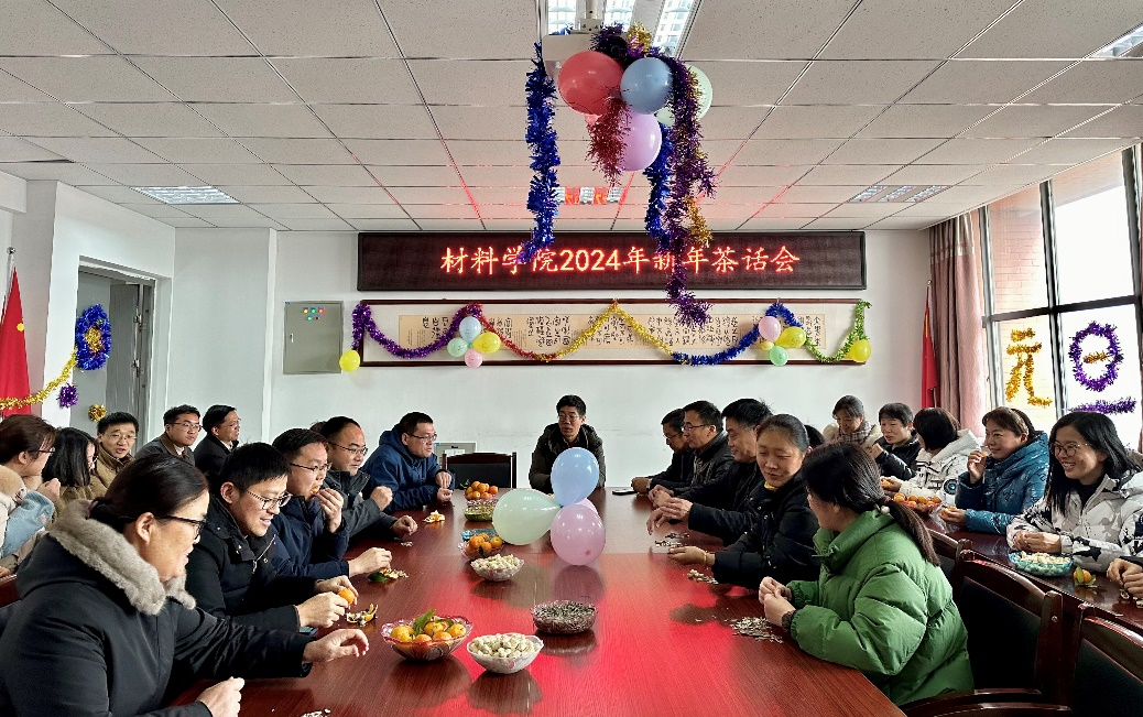 在元旦佳节来临之际,为认真贯彻落实党的二十大精神,丰富教职工文化生活,营造一个和谐、祥和、温馨的节日氛围。2023年12月29日下午,材料学院分工会在崇义楼B306举行了“庆元旦 迎新年”茶话会活动”。学院班子成员与教职工欢聚一堂,共度元旦,喜迎新年。