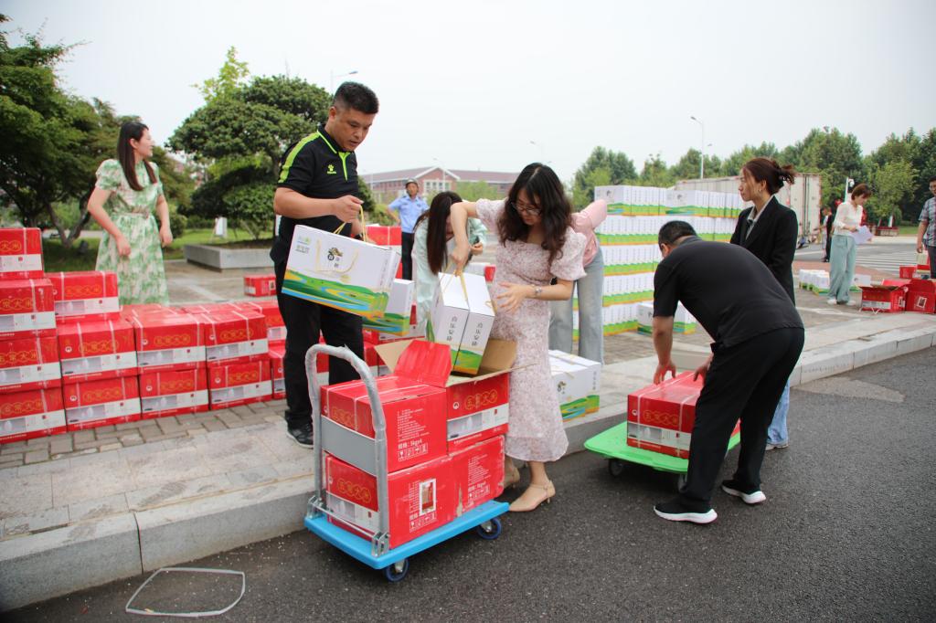 6月5日,在端午节来临之际,学校将乡村振兴消费帮扶与教职工年节福利发放有机结合,从定点帮扶点谢家集区汤王村和三和镇新华村采购的大米、香菇和杂粮包发放给教职工,为教职工带来端午节日的祝福。在学校统一组织和相关部门及各基层工会的协同配合下,经过紧张有序的清点和卸货、分发,顺利完成了农产品发放工作。