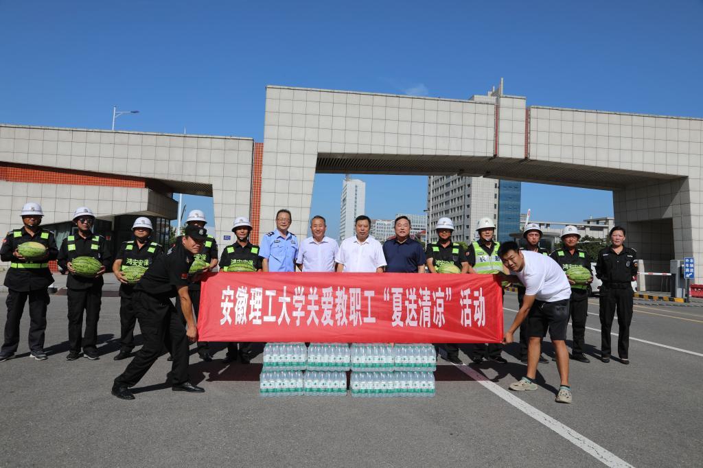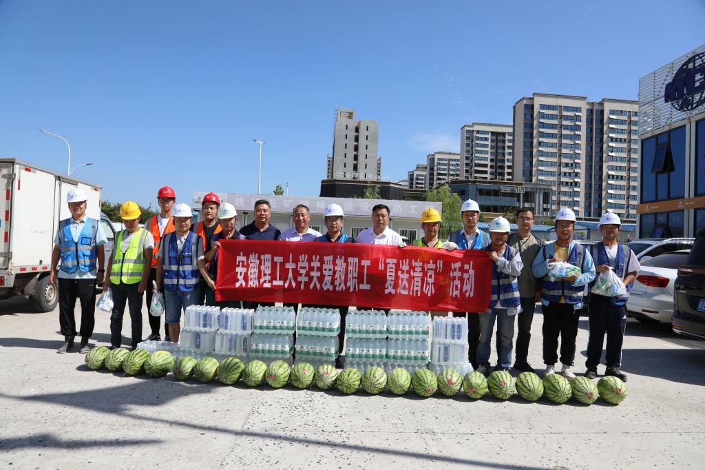 一份清凉更是一份关怀,学校的关心和慰问让奋战在一线的施工、销售、房产证办理和保卫人员倍感亲切和鼓舞,大家纷纷表示,感谢学校的关心与牵挂, “送清凉”活动让大家真切地感受到学校的关心关爱,更激发了他们的工作热情和积极性,将用自己的实际行动克服酷暑与高温带来的困难,战酷暑、保工期,争分夺秒抢进度,加快推动项目落地见效,确保施工和安保工作稳定有序的开展,为安徽理工大学“双一流”创建和各项事业发展贡献自己的一份力量。