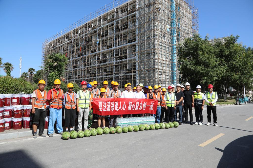 在慰问活动现场,鲁超看望了在高温酷暑中坚守岗位的职工,详细了解了项目建设进展及防暑降温措施落实情况,各岗位工作人员的工作情况和身体状况,向他们不畏酷暑、爱岗敬业、勇于奉献的精神以及为学校发展建设做出的贡献表示崇高敬意和亲切慰问,同时叮嘱大家保重身体,劳逸结合,确保安全度夏,并为奋斗在一线的他们送上清凉饮料、西瓜等防暑降温物品,送去学校党政的关心和慰问。
