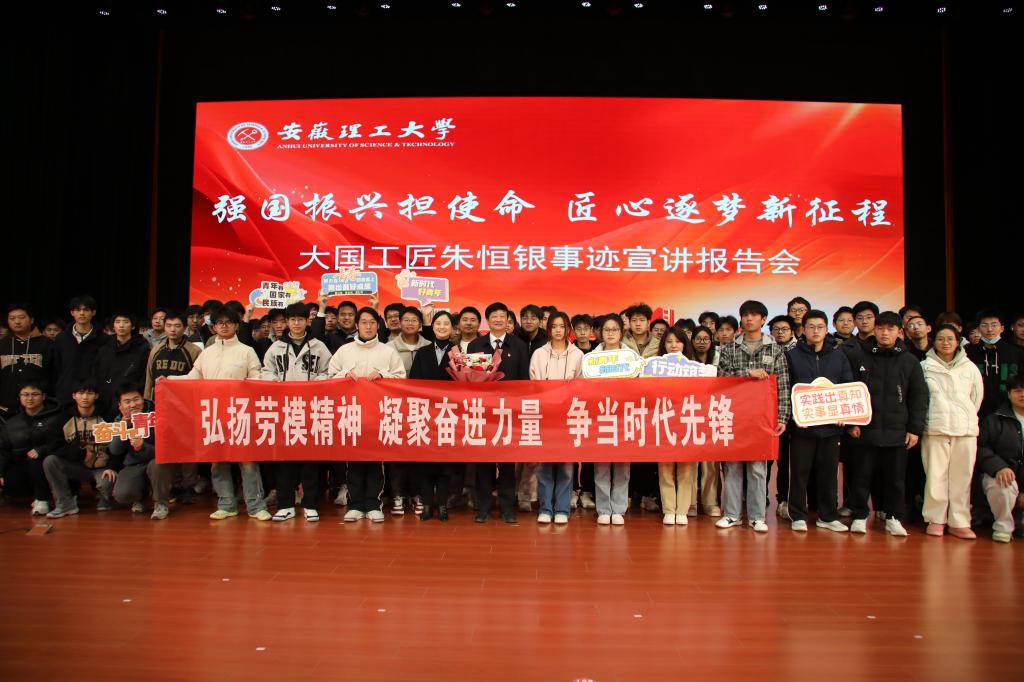 为大力弘扬劳模精神、劳动精神、工匠精神,激励青年学生敢于创新、勇于追逐“匠心梦”,12月19日下午,学校在大学生创新创业会议中心举办劳模大讲堂:大国工匠进校园活动,“大国工匠”朱恒银教授为学校师生作主题为“匠心向党,创新筑梦”的报告,全校1100余名同学参加了此次宣讲会。