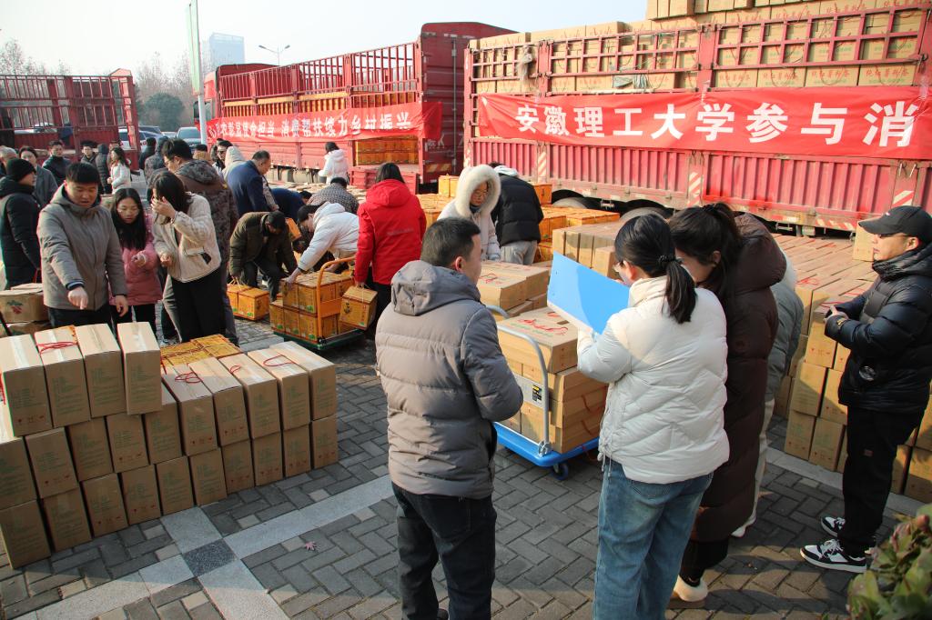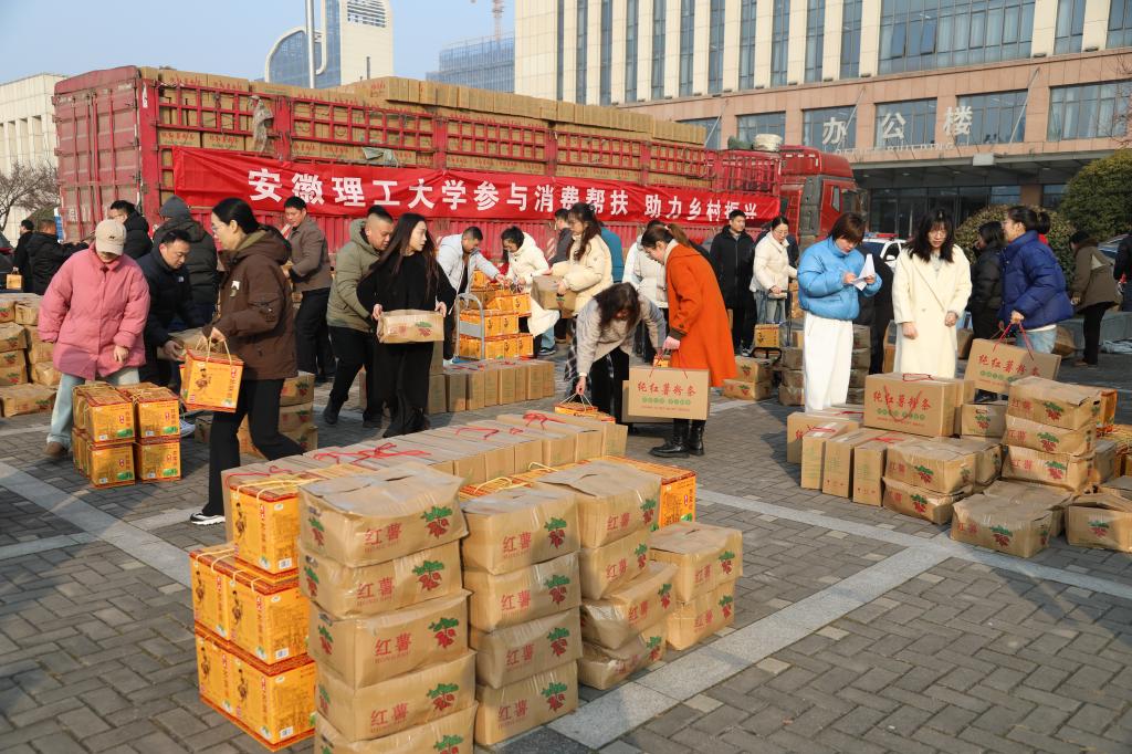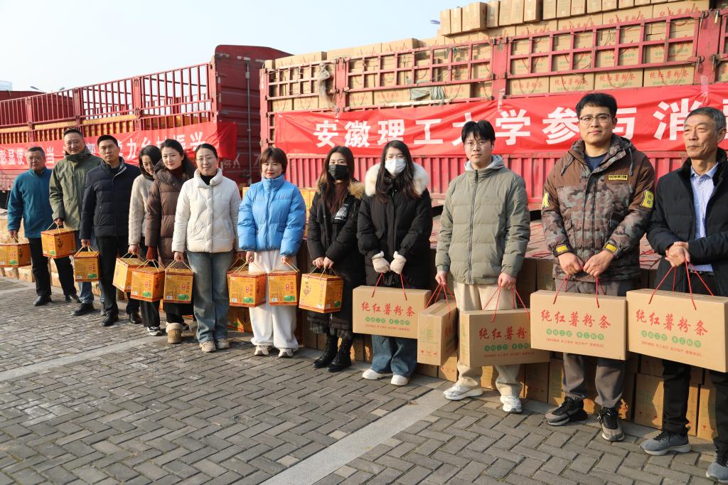 为进一步推进消费帮扶,助力乡村振兴工作,把解决村民农产品销路问题与“为民办实事”实践活动相结合,在了解到学校定点帮扶的临泉县滑集镇王香铺村和南杨小村农产品滞销的情况后,校党委常委、副校长鲁超亲自带队前往帮扶村调研,详细了解相关情况,帮助制定帮扶措施,学校将乡村振兴消费帮扶与教职工年节福利发放相结合,帮助解决村民的后顾之忧,助力壮大村集体经济。