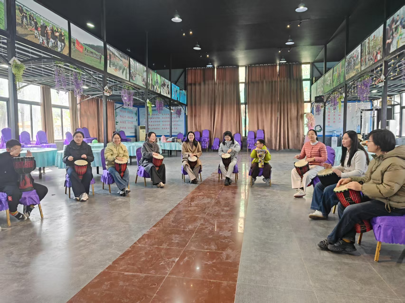鼓动之趣,增强合作精神。在工作人员的讲解下,女职工们了解非洲音乐文化以及“鼓”在非洲音乐中的作用,体会复杂多变的节奏特点。大家通过亲身体验,小组合作的形式共同演奏曲目,培养了沟通能力和团队合作精神。现场到处洋溢着节日喜庆与快乐,氛围感满满!