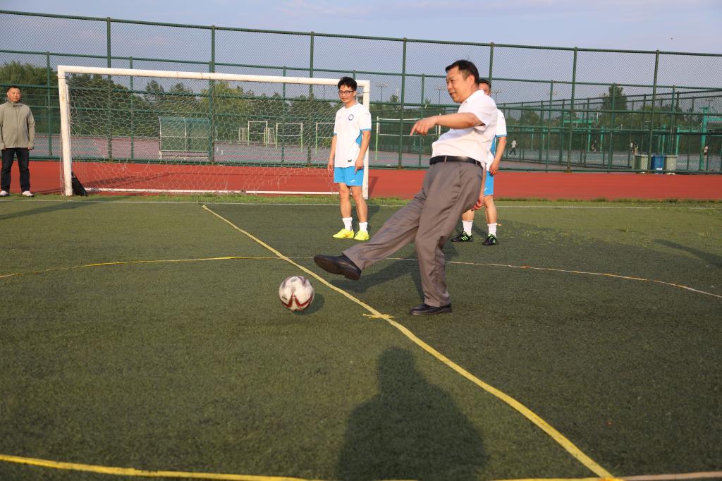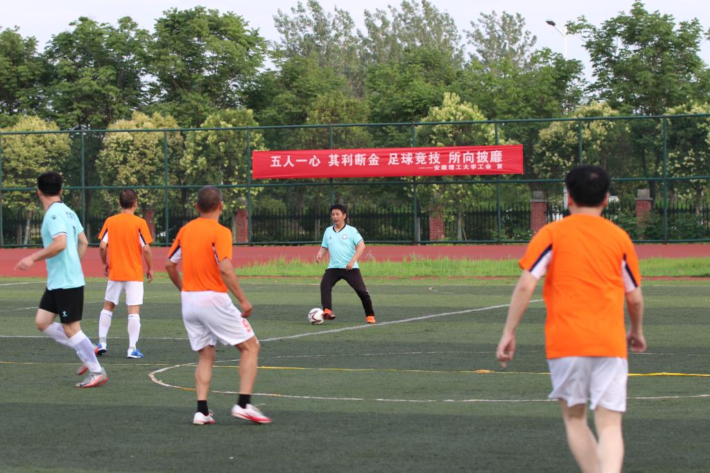 为丰富教职工业余文化生活,增强广大教职工身体素质,提高我校教职工足球运动竞技水平,为学校80周年校庆营造浓厚的氛围,6月9日下午,安徽理工大学2025年“校庆杯”教职工男子五人制足球赛在信义体育场拉开序幕,校党委常委、副校长鲁超为比赛开球。