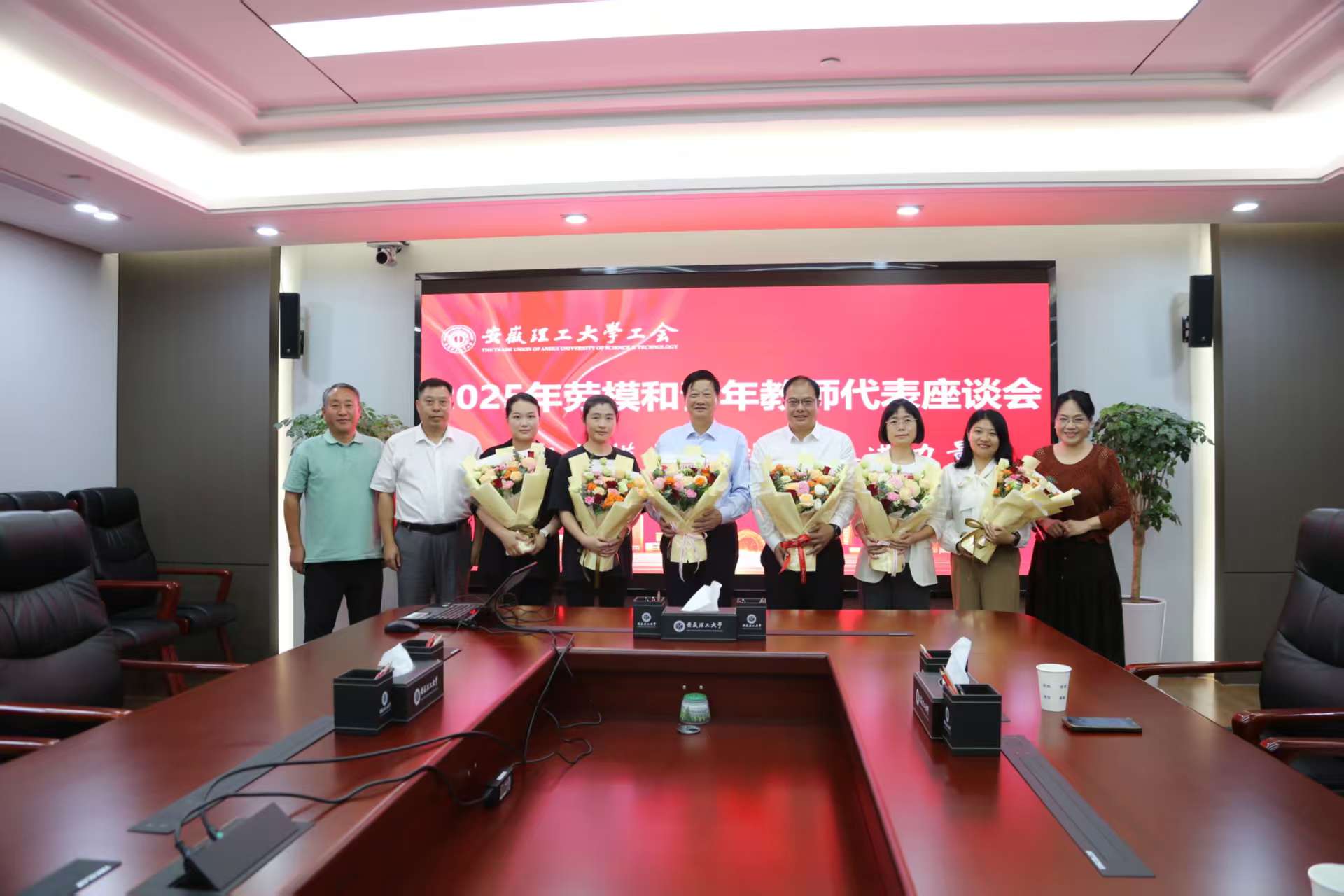 全国劳动模范、大国工匠朱恒银教授,全国先进工作者陆伟教授,省五一劳动奖章获得者褚程程、李洁、隗晓璇和参加2025年安徽省第七届青教赛的金成志、程仲、王利华、伍娟、李阿敏、史然等六位青年教师代表分别畅谈了自己科研、教学等方面工作情况;鲁超认真倾听、详细了解了劳模和青年教师的工作和生活情况,倾听他们对学校发展和工会工作的宝贵建议,充分肯定了劳模、青年教师为学校高质量发展做出的突出贡献,为他们送上鲜花、慰问品和慰问金,并转达了省总工会、省教科文卫体工会和学校领导对大家的关心关怀和节日祝福;鲁超勉励大家,再接再厉,不断更新教育理念,潜心钻研教学业务,提升教育教学和育人能力,为学校“双一流”创建再立新功。