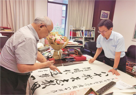 (陈鲸院士为校庆80周年题字 刘艳 摄影)