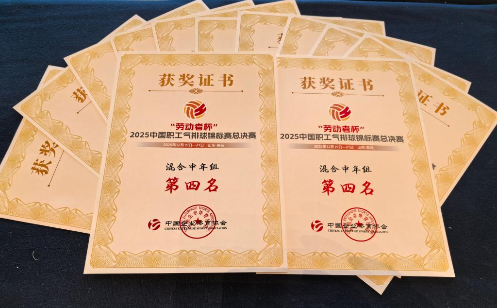 12月21日,“劳动者杯”2025中国职工气排球锦标赛总决赛在青岛市民健身中心体育馆圆满落幕。来自全国各地电子、电力、煤矿、铁路、教育等行业的58支职工代表队、500名运动员齐聚赛场,展开激烈角逐。我校教职工气排球代表队奋勇拼搏,最终荣获混合中年组第四名的优异成绩。
