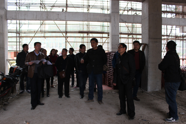 在基建处陈维群老师的指引下,学院院长赵志根等一行21人来到测绘学院楼,对照测绘学院工程设计图纸,仔细考察了教学科研用房、行政办公用房、实验室的房间布局情况,询问工程进度,认真听取了基建处老师对工程建设进展情况的详细介绍,对新校区的建设情况表示满意,对即将建成的新校区充满了憧憬和期待。