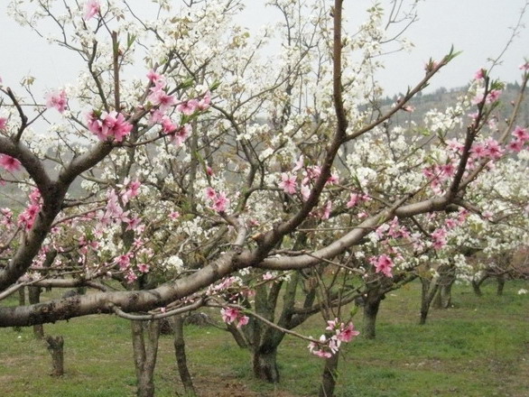 在寿县郝圩村,满山的桃树梨树争相开放,娇艳欲滴;油菜花正金黄,麦苗正青绿,八公山下犹如一幅美不胜收的风景画。大家放慢了脚步,享受着悠闲和欢愉,陶醉在春风里。