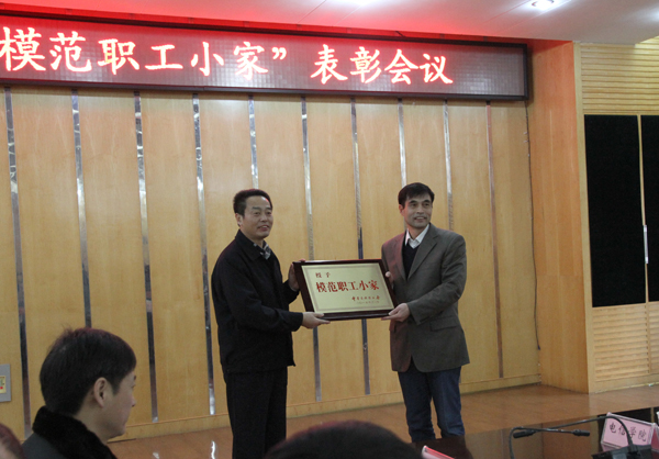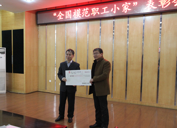 会上,唐成代表上级工会宣读了《中华全国总工会关于表彰全国模范职工之家、全国模范职工小家、全国优秀工会工作者的决定》。凤桦代表上级工会向机械工程学院分工会授予“全国模范职工小家”牌匾。王洪为机械工程学院分工会颁发了配套奖金。
