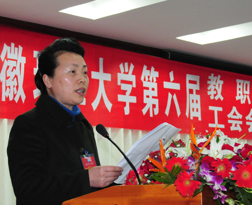 省教育工会副主席王兰代表省教育工会对大会的召开表示热烈的祝贺,并充分肯定了我校教代会和工会工作所取得的成绩。她希望新一届教代会和工会在学校党委的领导下,以此次大会为起点,进一步围绕中心,服务大局,奋发努力,扎实工作,力争教代会和工会工作取得更大进步,获得新的发展。