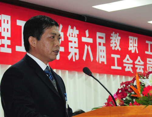 校党委书记张明旭对学校第五届教代会、工代会工作进行了回顾,对各项工作取得的成绩和荣誉表示肯定和赞赏。他指出,从现在开始的今后几年,是我校实现第五次党代会提出的建设目标,推进各项事业科学、和谐发展的关键时期,此次会议对于进一步坚定信心、鼓舞士气具有十分重要的意义。就做好今后工作,张书记提出三点意见:一是深入学习实践科学发展观,推动学校各项事业科学发展;二是坚持民主管理,进一步加强民主政治建设;三是以人为本、关注民生,积极构建和谐校园。他希望广大教职工正确处理个人利益与学校利益、局部利益与整体利益、眼前利益与长远利益的关系,以主人翁姿态,将自身发展融入学校的发展,共同开创学校工作的新局面。