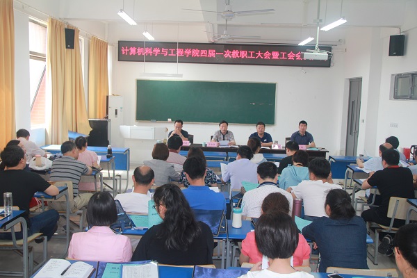 6月1日,计算机科学与工程学院四届一次教职工代表大会暨工会会员大会在求本楼B401会议室召开。院领导班子成员及全体教职工代表参加会议。