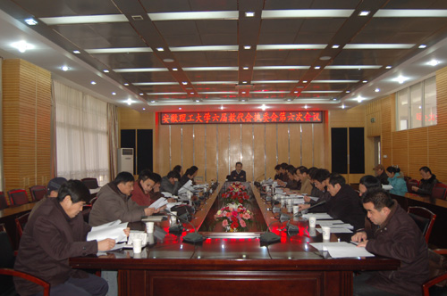 经审议,会议一致通过《关于召开安徽理工大学第六届教职工代表大会第五次会议的请示》(讨论稿),内容包括大会指导思想、主要议程与日程安排、代表团的组建、参加大会人员、以及主席团及秘书长和副秘书长组成原则、特邀人员名单等。根据文件精神,校六届五次教代会拟于2013年3月15日至16日举行。
