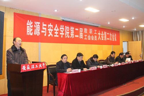 1月23日,安徽理工大学能源与安全学院二届二次全体教职工大会暨工会会员大会在图书馆西会议室隆重召开。副校长叶醒狮出席大会并致辞。校工会副主席夏邦权应邀出席大会。大会由学院党委副书记王大贤主持。全体教职工(工会会员)参加了会议。