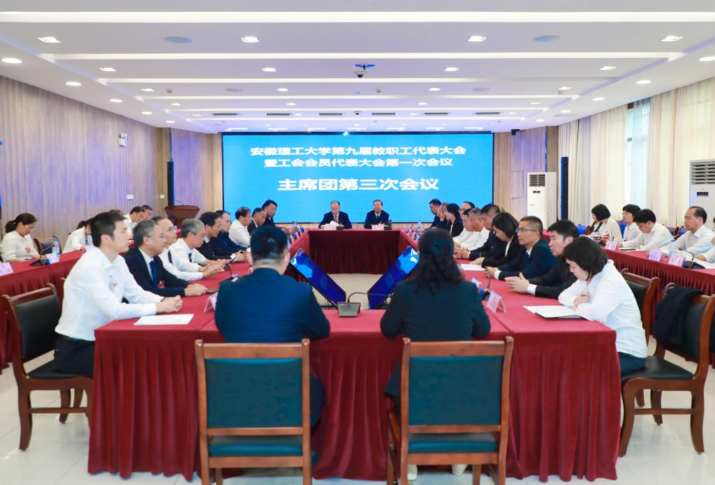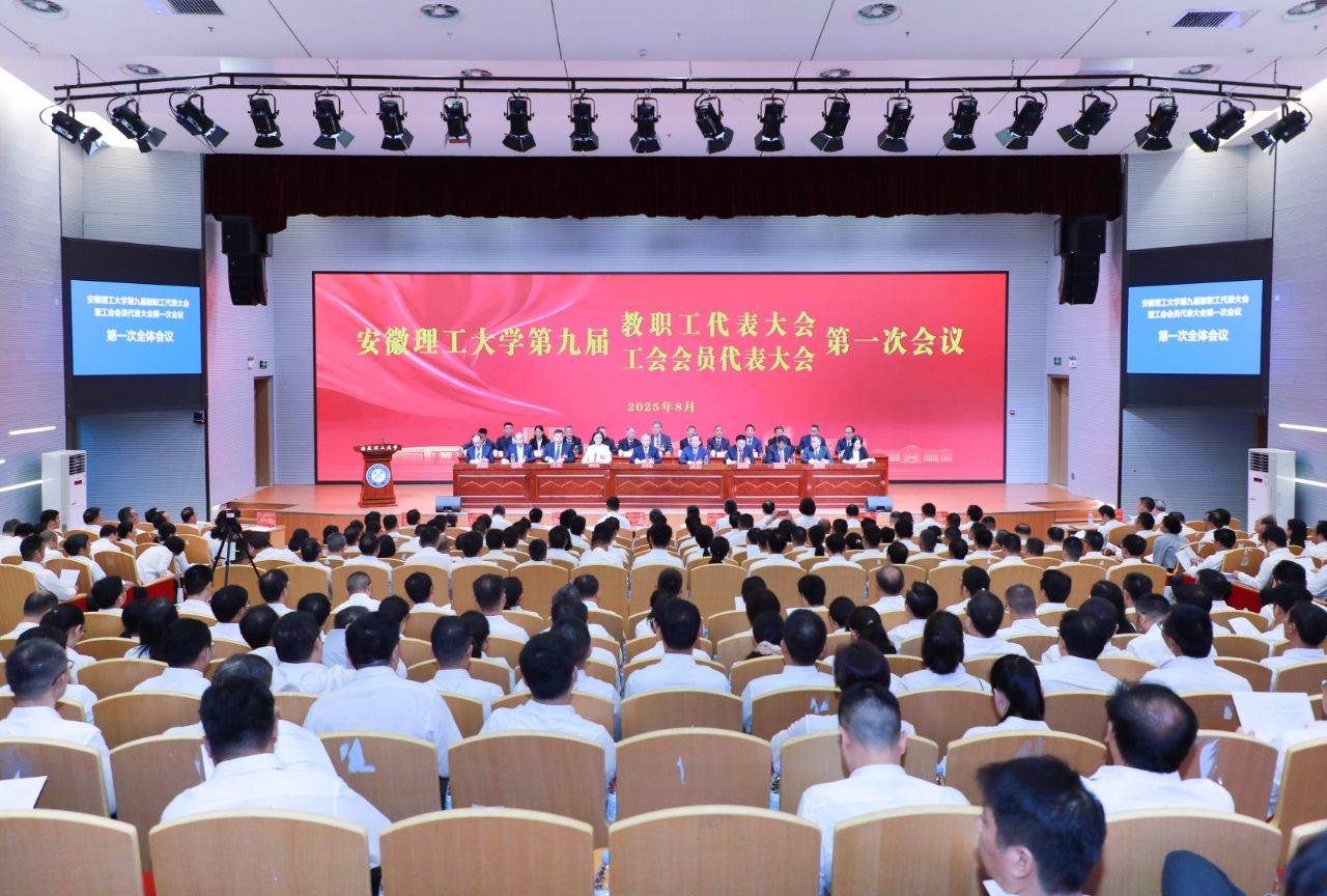 大会通过了《安徽理工大学第九届教职工代表大会暨工会会员代表大会第一次全体会议决议》。大会号召,全校教职工要以习近平新时代中国特色社会主义思想为指导,在学校党委的坚强领导下,聚焦第八次党代会确定的“1610 工程”,在“十四五”收官之年和喜迎建校 80 周年的标志性节点,以“时不我待、只争朝夕”的奋进姿态,以“敢为人先、追求卓越”的责任担当,为创建安全科学与工程世界一流学科和国内一流特色高水平大学而努力奋斗!
